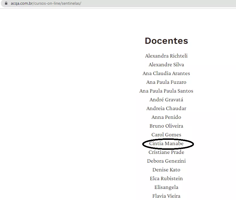 Em 2021, foi convidada a docente do curso Sentinelas, da dra. Ana Claudia Arantes (autora do livro: A morte é um dia que vale a pena viver), onde ministra aulas com o tema Toque Terapêutico. Devido a um dos diferenciais do Shiatsu do Método Manabe que é o Toque de Conexão Manabe, o tipo de toque no Shiatsu.